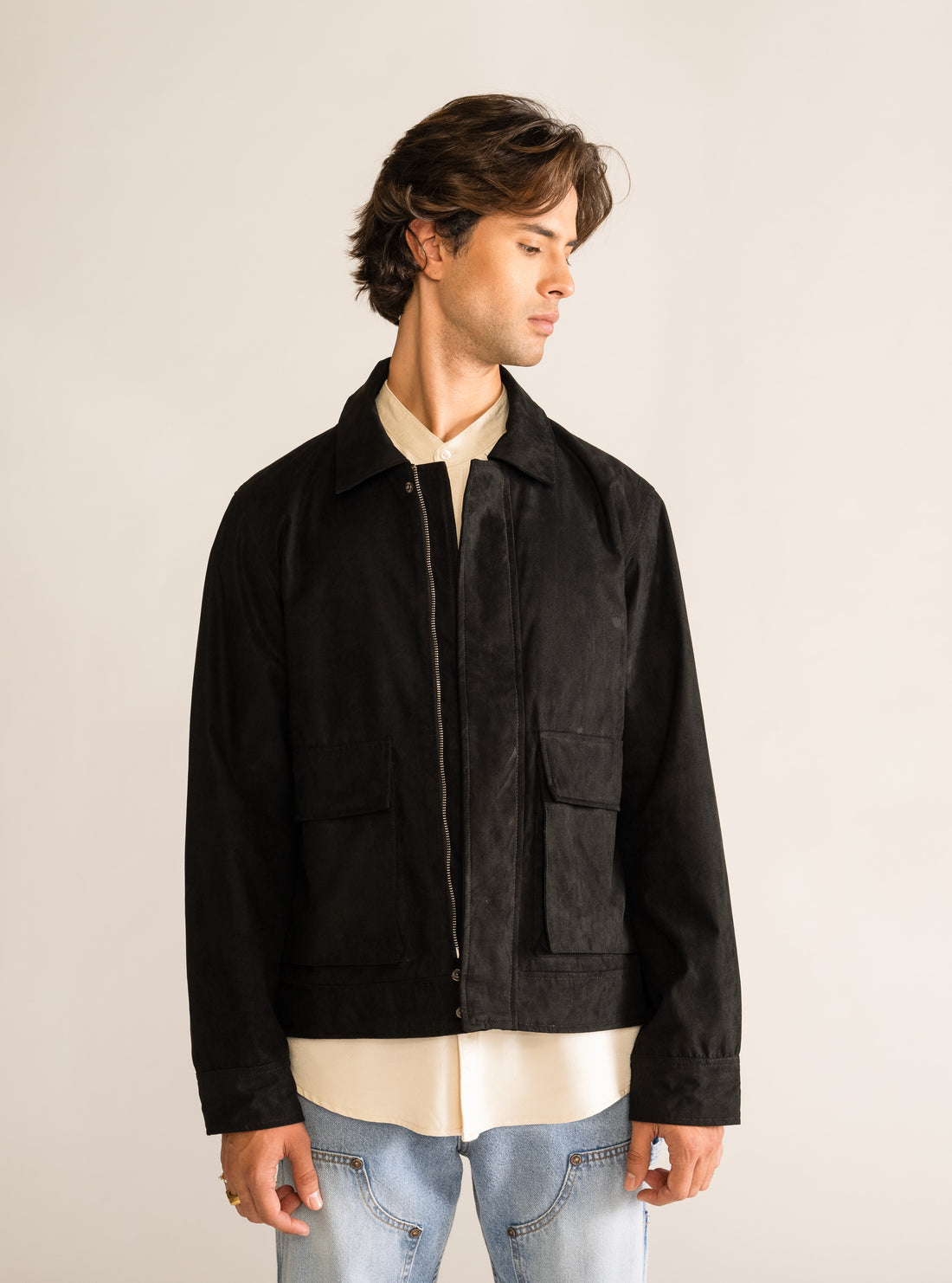 Suede Dark Brown Patch pocket Jacket, Negro