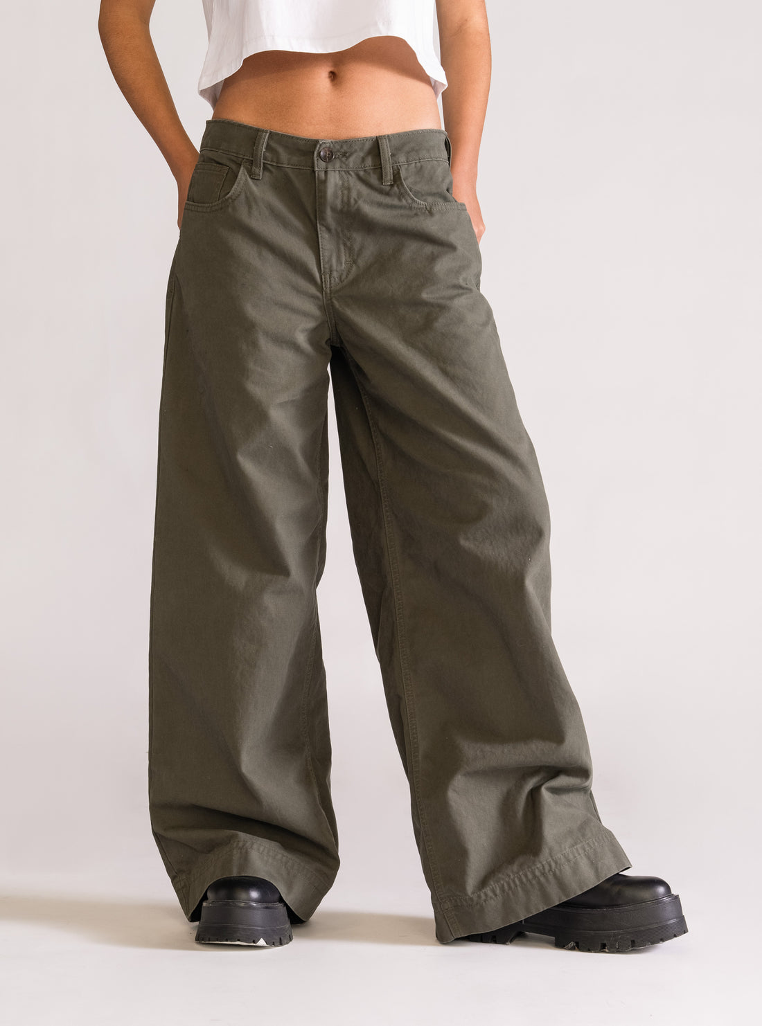 Super Wide Leg, Cintura Baja, Verde Olivo