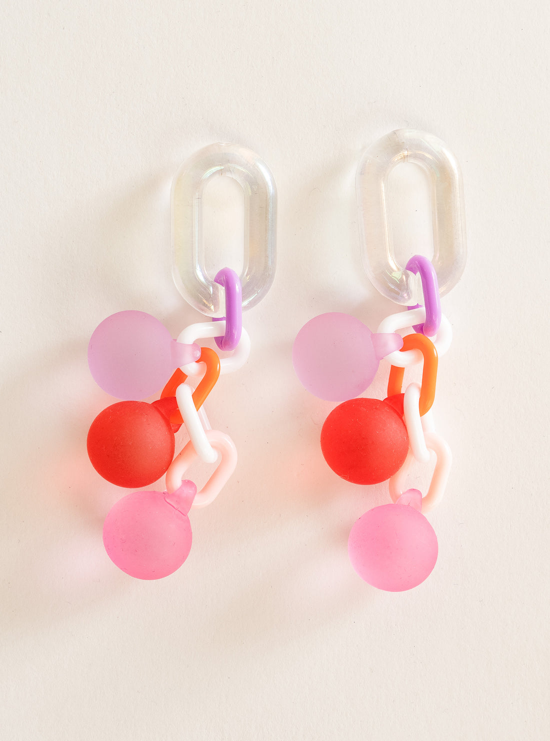 Colorful Gum Ball Chain Acrylic Earrings, Rojo