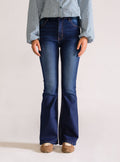 Basic Bell Bottom Jeans, Azul Obscuro